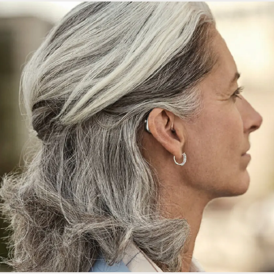 El audífono con receptor en el canal (RIC) se coloca discretamente detrás de la oreja y viene con una batería pequeña pero potente, para que pueda concentrarse en la audición.